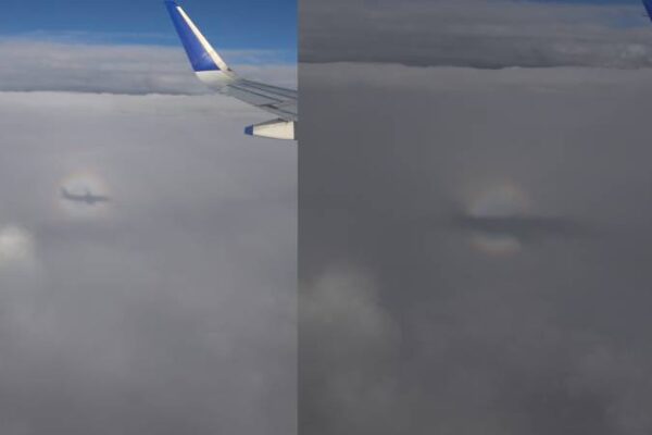 വിമാനത്തിന്റെ നിഴൽ മേഘങ്ങളിൽ പതിയുമ്പോൾ, ആ നിഴലിനു ചുറ്റും മഴവില്ലിന്റെ നിറങ്ങളോടുകൂടിയ ഒരു വലയം (halo) ദൃശ്യമാകുന്നത് കണ്ടിട്ടുണ്ടോ? എന്നാൽ അത്തരമൊരു പ്രതിഭാസത്തിന്റെ ചിത്രം ഇപ്പോൾ വൈറലായിരിക്കുകയാണ്….
