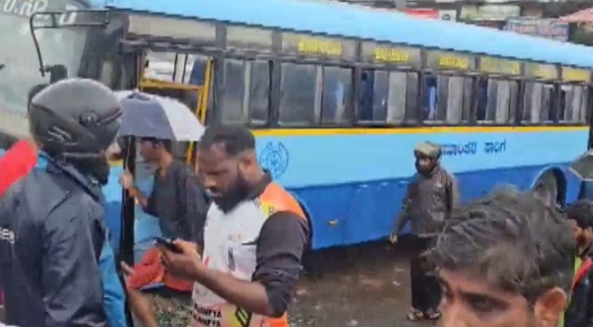 ബ്രേക്ക് പോയ ബസ് നേരെ കാത്തിരുപ്പു കേന്ദ്രത്തിലേക്ക് ഇടിച്ചുകയറുകയായിരുന്നു.