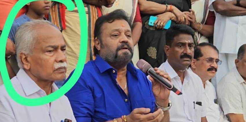 സുരേഷ് ഗോപിയുടെ രാഷ്ട്രീയ സംവാദ വേദിയിൽ ഡി.സി.സി അംഗം. തൃശൂർ ഡി.സി.സി അംഗവും മുൻ ബ്ലോക്ക് പ്രസിഡൻ്റുമായ പ്രൊഫ.സി.ജി ചെന്താമരാക്ഷനാണ് സുരേഷ് ഗോപിയുടെ കലുങ്ക് സൗഹൃദ സംഗമത്തിൽ പങ്കെടുത്തത്. വേദിയിൽ സുരേഷ് ഗോപിക്ക് നന്ദി പറഞ്ഞ് സംസാരിക്കുകയും ചെയ്തു