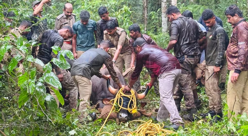 തുടർന്ന് വെറ്ററിനറി ഡോക്ടർ ഇല്യാസിന്റെ നേതൃത്വത്തിലുള്ള സംഘമാണ് ഇന്ന് ഉച്ചയ്ക്ക് 12 മണിയോടെ കാട്ടുപോത്തിനെ മയക്കുവെടി വച്ച് പിടികൂടിയത്. വനംവകുപ്പ് ഉദ്യോഗസ്ഥരും വെറ്ററിനറി സർജനും സ്ഥലത്ത് സന്നിഹിതരായിരുന്നു.