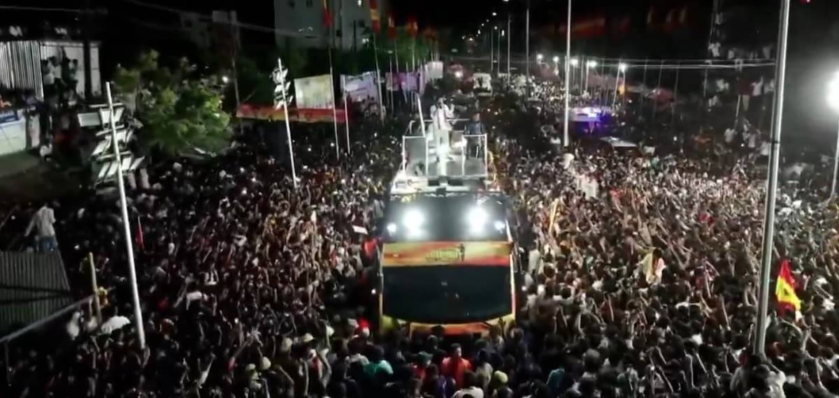 ശനിയാഴ്ച വൈകിട്ടായിരുന്നു രാജ്യത്തെ നടുക്കിയ 41 പേരുടെ മരണത്തിന് ഇടയാക്കിയ അപകടമുണ്ടായത്. നിശ്ചയിച്ചതിലും ആറ് മണിക്കൂര് വൈകി വൈകിട്ട് ഏഴ് മണിയോടെയായിരുന്നു വിജയ് പരിപാടിക്ക് എത്തിയത്. ഈ സമയമത്രയും ഭക്ഷണവും വെള്ളവുമില്ലാതെ ആളുകള് കാത്തുനിന്നു. വിജയ് പ്രസംഗം ആരംഭിച്ച് അല്പസമയം കഴിഞ്ഞപ്പോള് തന്നെ ആളുകള് തളര്ന്നുതുടങ്ങി. സ്ഥലത്തുണ്ടായിരുന്ന പൊലീസും ടിവികെ പ്രവര്ത്തകരും അടക്കമുള്ളവര് ആളുകളെ ആശുപത്രിയിലേക്ക് കൊണ്ടുപോയി. ആദ്യ ദിനം 38 പേരായിരുന്നു മരിച്ചത്. പത്ത് കുട്ടികള്, പതിനാറ് സ്ത്രീകള്, പന്ത്രണ്ട് പുരുഷന്മാര് എന്നിങ്ങനെയായിരുന്നു മരണ സംഖ്യ. പിന്നീട് മൂന്ന് മരണം കൂടി സ്ഥിരീകരിച്ചു.