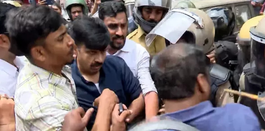 കേസില് ഒന്നാം പ്രതിയാണ് സന്ദീപ് വാര്യര്. വിജയ് ഇന്ദുചൂഡനാണ് രണ്ടാംപ്രതി. സന്ദീപ് വാര്യരുടെ ഉദ്ഘാടന പ്രസംഗത്തിന് പിന്നാലെ പ്രവര്ത്തകര് അക്രമാസക്തരാകുകയായിരുന്നു. പ്രവര്ത്തകരെ നിയന്ത്രിക്കാന് ഇടറോഡില് പൊലീസ് ബാരിക്കേഡുകള് സ്ഥാപിച്ചിരുന്നെങ്കിലും പ്രവര്ത്തകരെ പൊലീസിന് നിയന്ത്രിക്കാനായില്ല. ബാരിക്കേഡ് മറികടന്നവര് തിരുവിതാംകൂര് ദേവസ്വം ബോര്ഡ് ഡെപ്യൂട്ടി കമ്മീഷണറുടെ ഓഫീസിന് മുന്നിലെത്തി. ഓഫീസിന് മുന്നില് പ്രവര്ത്തകര് തേങ്ങ ഉടയ്ക്കുമെന്നായിരുന്നു ആദ്യം അറിയിച്ചത്. എന്നാല് പ്രവര്ത്തകര് തേങ്ങ ഓഫീസിന് നേരെ വലിച്ചെറിഞ്ഞു.