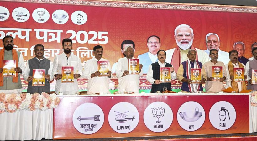 ഒരു കോടി സര്ക്കാര് ജോലിയടക്കം വാഗ്ദാനങ്ങളുമായി ബിഹാറില് എന്ഡിഎയുടെ പ്രകടനപത്രിക പുറത്തിറക്കി. സ്ത്രീകള്ക്കും പിന്നോക്ക വിഭാഗങ്ങള്ക്കും പ്രത്യേകം സാമ്പത്തിക സഹായം പത്രികയില് ഉണ്ട് . എന്ഡിഎ സഖ്യകക്ഷി നേതാക്കള് എല്ലാവരും ചേര്ന്നാണ് പറ്റ്നയില് പ്രകടനപത്രിക പുറത്തിറക്കിയത്.