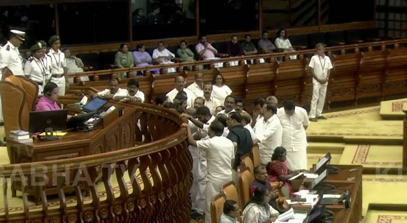 പ്രതിഷേധവുമായി പ്രതിപക്ഷം നടുത്തളത്തിൽ ഇറങ്ങി. പ്ലക്കാർഡുകളുമായി മുദ്രാവാക്യം വിളിച്ചു. ബഹളത്തിന് ഇടയിലും നടപടികൾ സ്പീക്കർ തുടർന്നു. അതേസമയം ശബരിമല സ്വർണക്കൊള്ളയിൽ നിയമസഭാ കവാടത്തിന് മുന്നിൽ രണ്ട് പ്രതിപക്ഷ എംഎൽഎമാർ സത്യഗ്രഹ സമരം ആരംഭിച്ചു. നജീബ് കാന്തപുരം, സിആർ മഹേഷ് എന്നിവരാണ് സമരം ചെയ്യുന്നത്. ദേവസ്വം മന്ത്രി വി എൻ വാസവൻ രാജിവയ്ക്കണമെന്ന് പ്രതിപക്ഷ നേതാവ് വി ഡി സതീശൻ ആവശ്യപ്പെട്ടു. സമരം നിയമസഭാ കവാടത്തിലാണെങ്കിലും ഹൈക്കോടതിയ്ക്ക് എതിരെയാണെന്ന് മുഖ്യമന്ത്രി പിണറായി വിജയൻ പറഞ്ഞു.